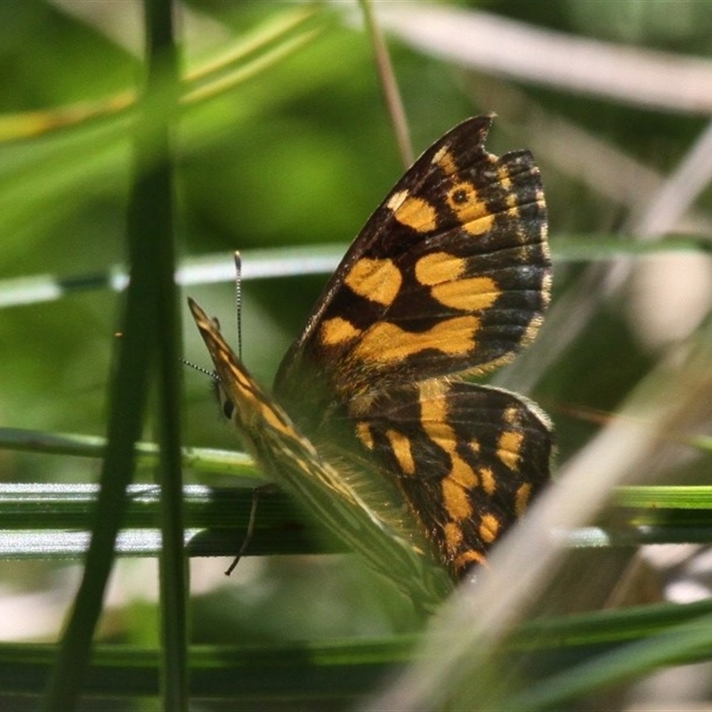 black hour-glass-shaped patch from nape to between eyes