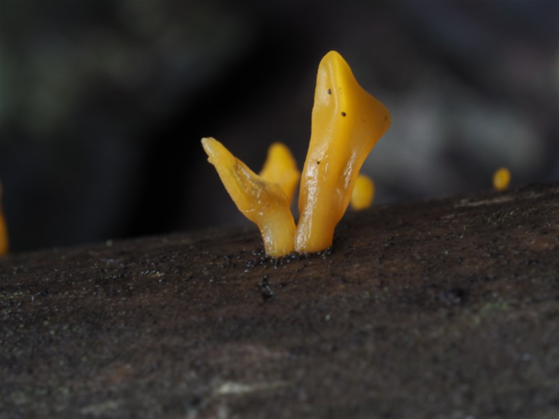 KenT Canberra & Southern Tablelands NatureMapr Clubs/stalks on wood or on leaf/twig litter Clubs or stalks (maybe a forked or broader apex) Fungi Calocera sp.