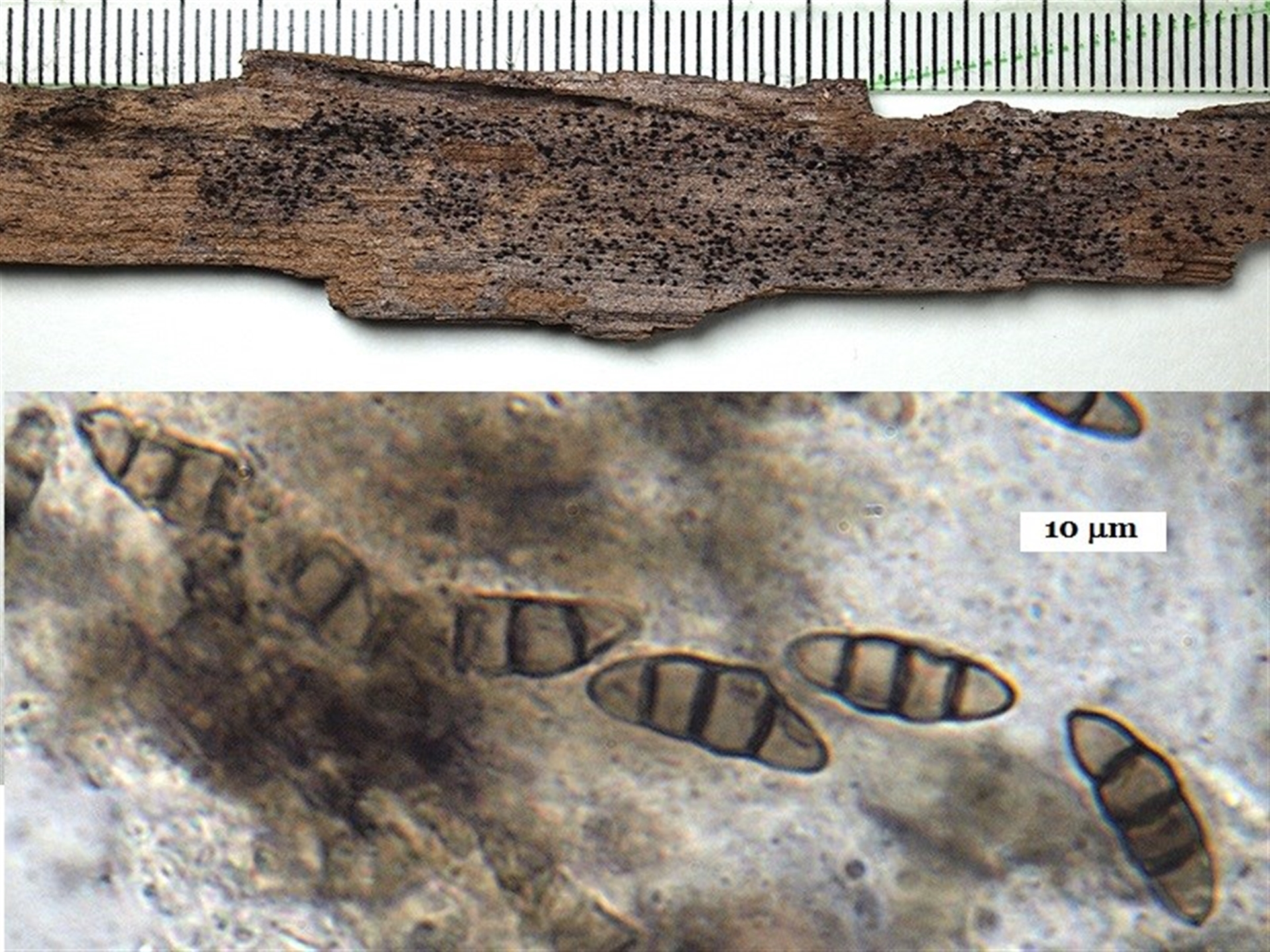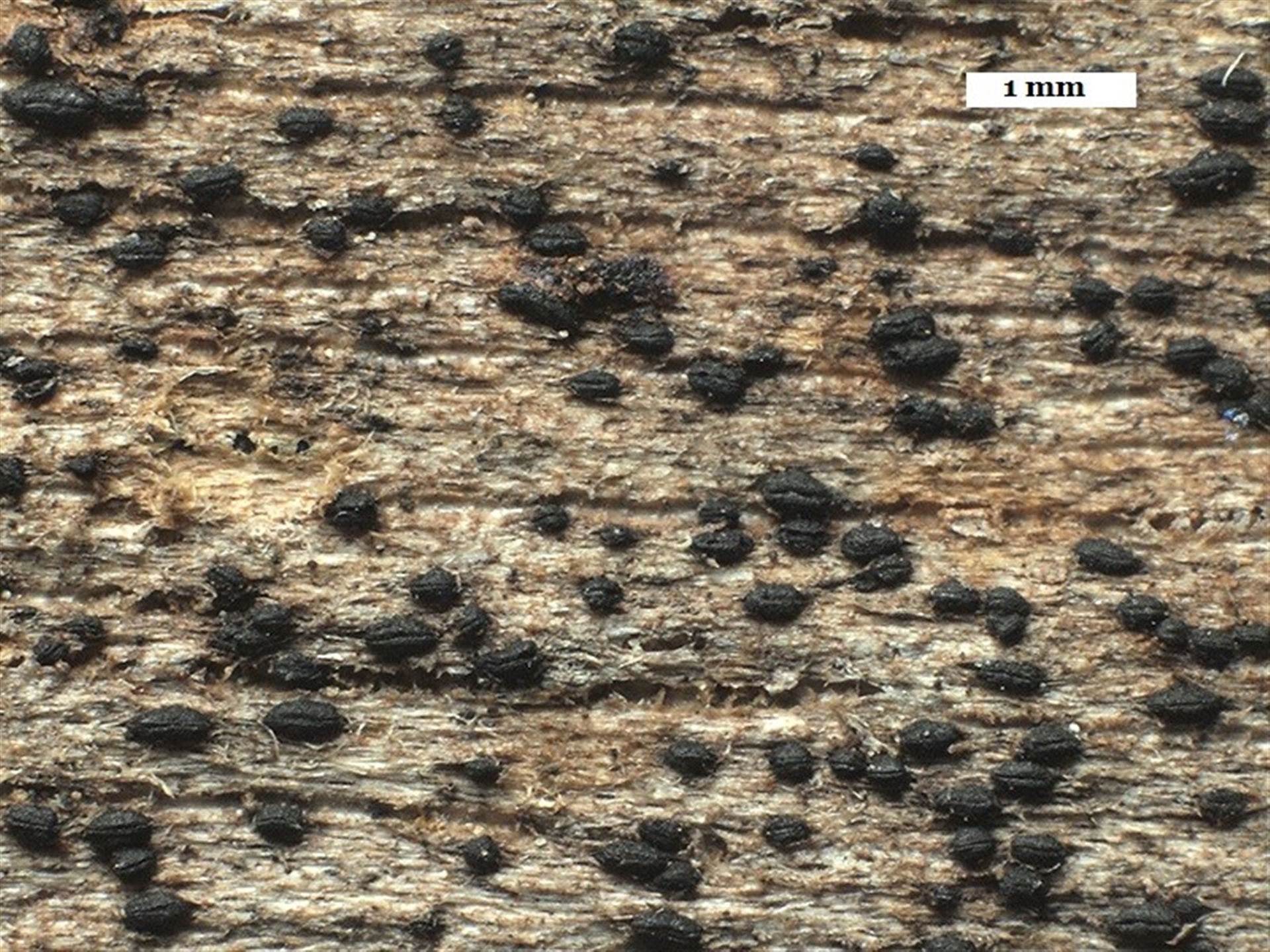 These were on a fallen eucalypt bark flake and Photo 3 shows the naked eye view as well as a few spores.