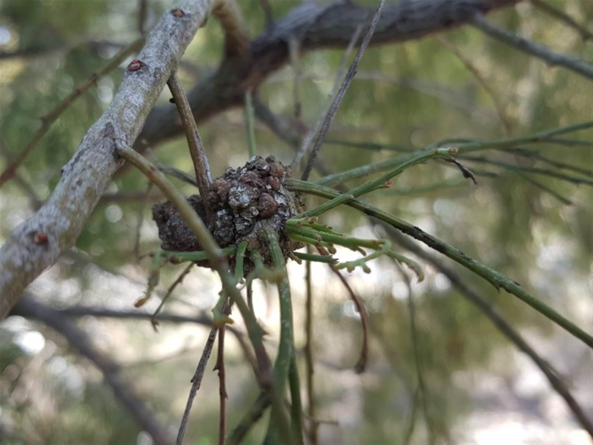 Exocarpos associations Mike NatureMapr Canberra & Southern Tablelands Fungal galls Fungal galls, other rusts, leaf spots, etc Fungi Fungal gall of Exocarpos sp.
