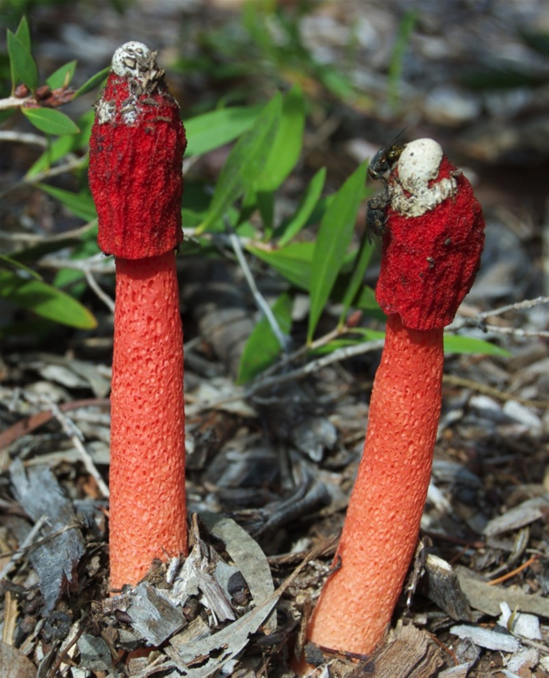 Fungi Stinkhorns, some other shape- and miscellaneous Stinkhorns: with a smelly, brownish spore slime KMcCue Canberra & Southern Tablelands NatureMapr Phallus rubicundus