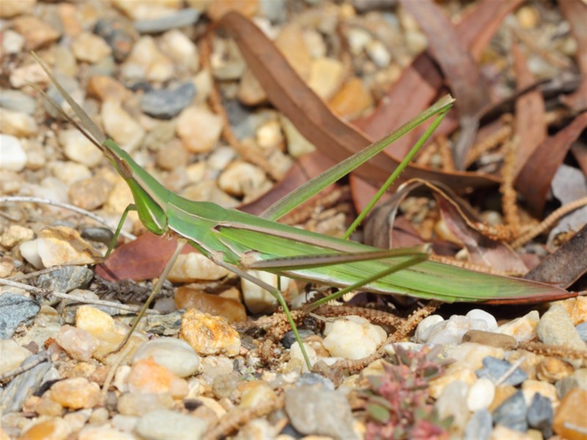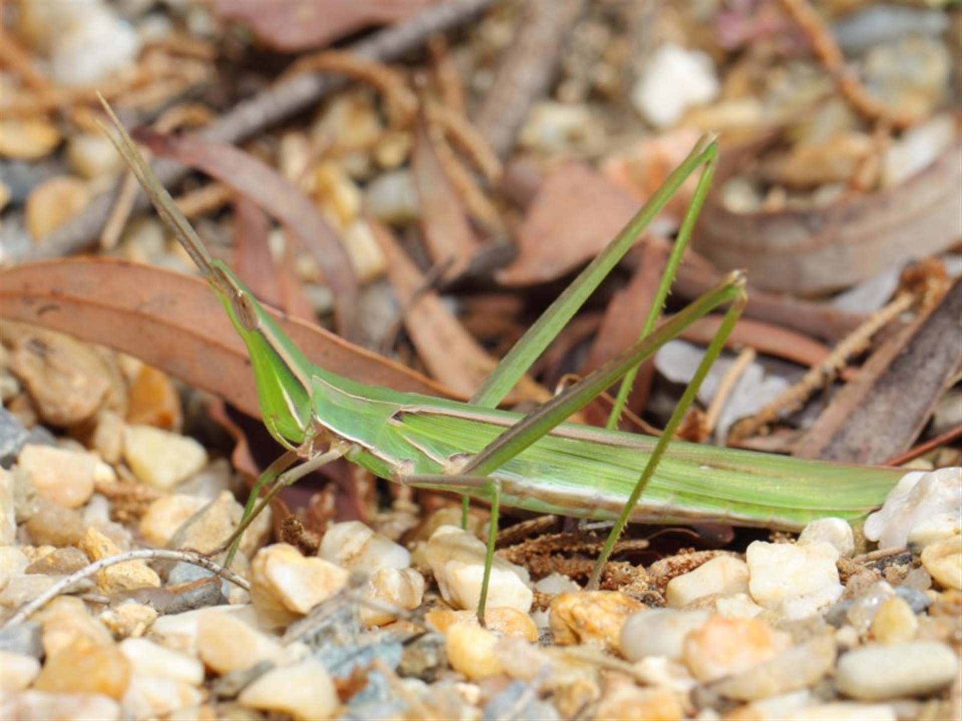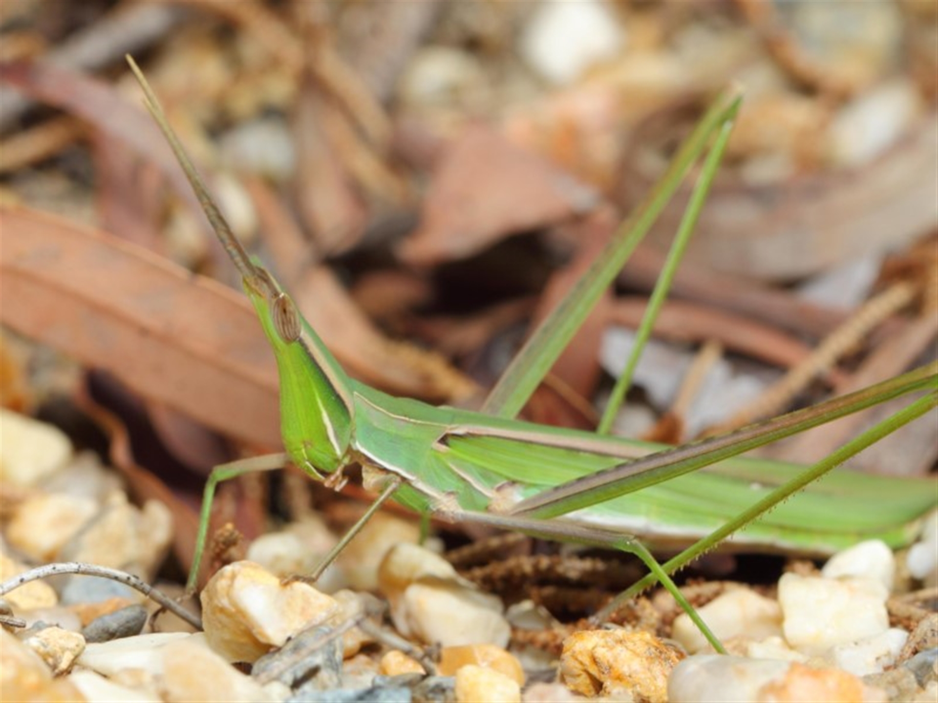 TimL Canberra & Southern Tablelands NatureMapr Acrida conica Grasshoppers (several families) Grasshoppers, Crickets & Katydids (Orthoptera) Insects