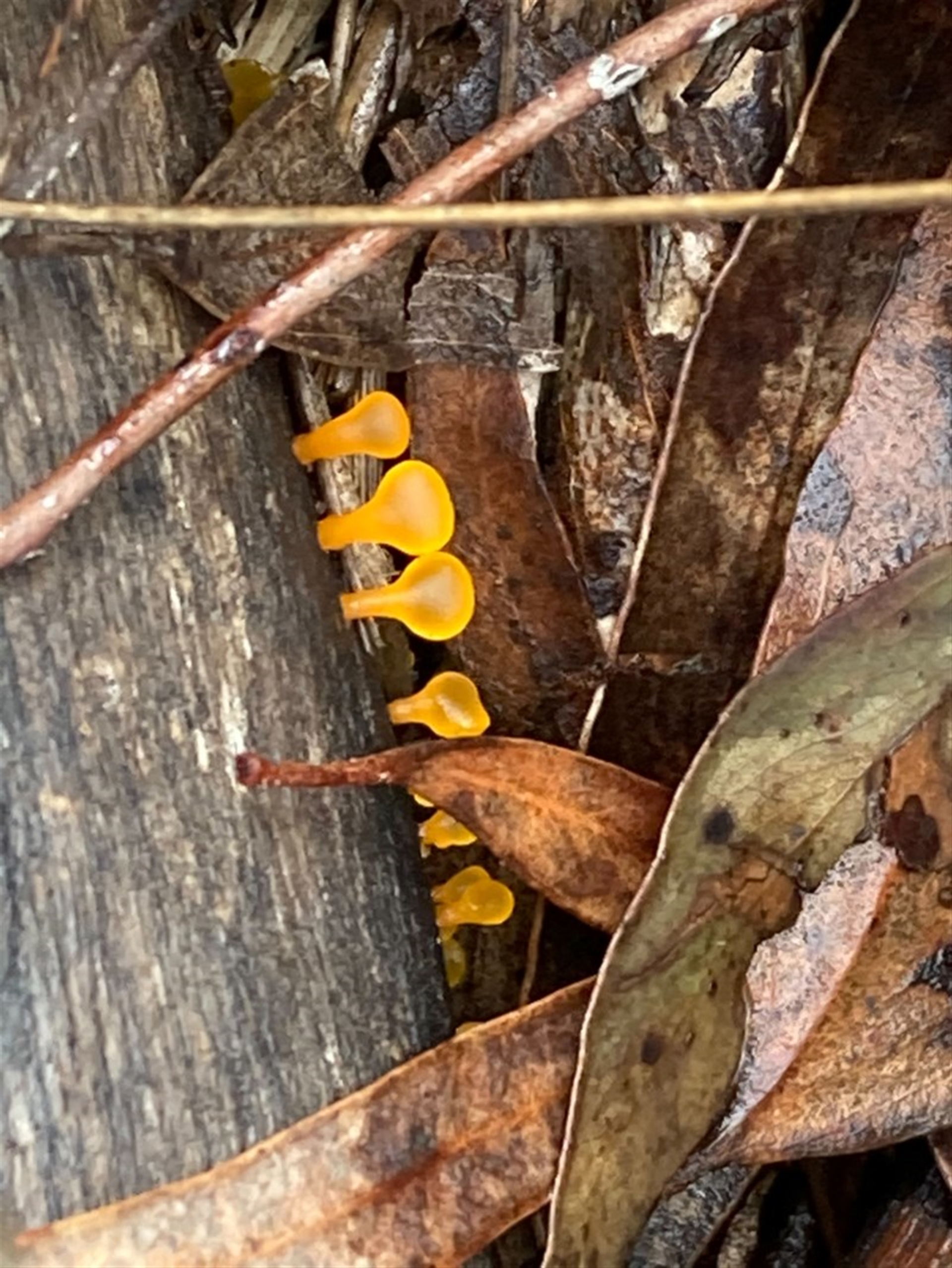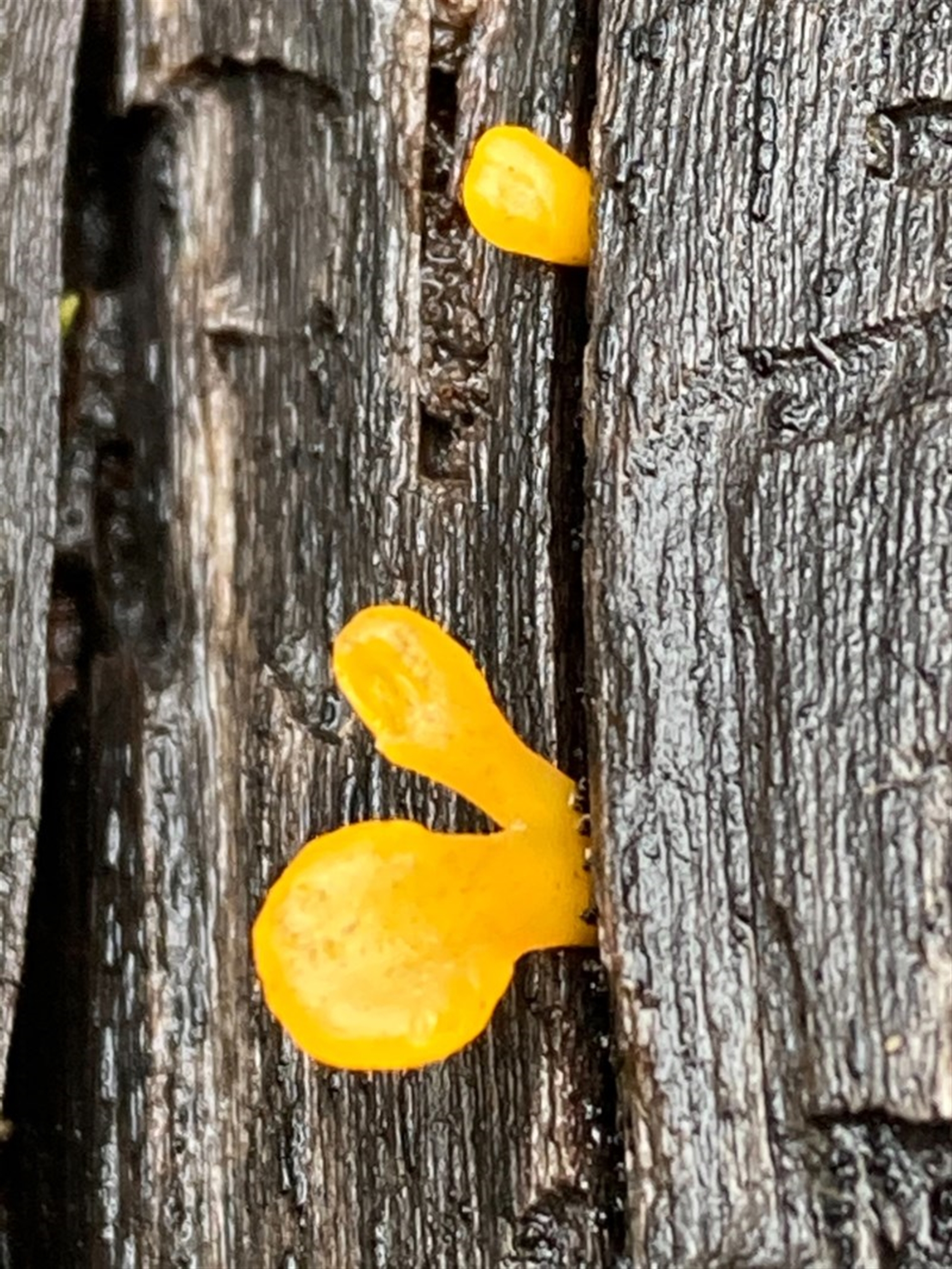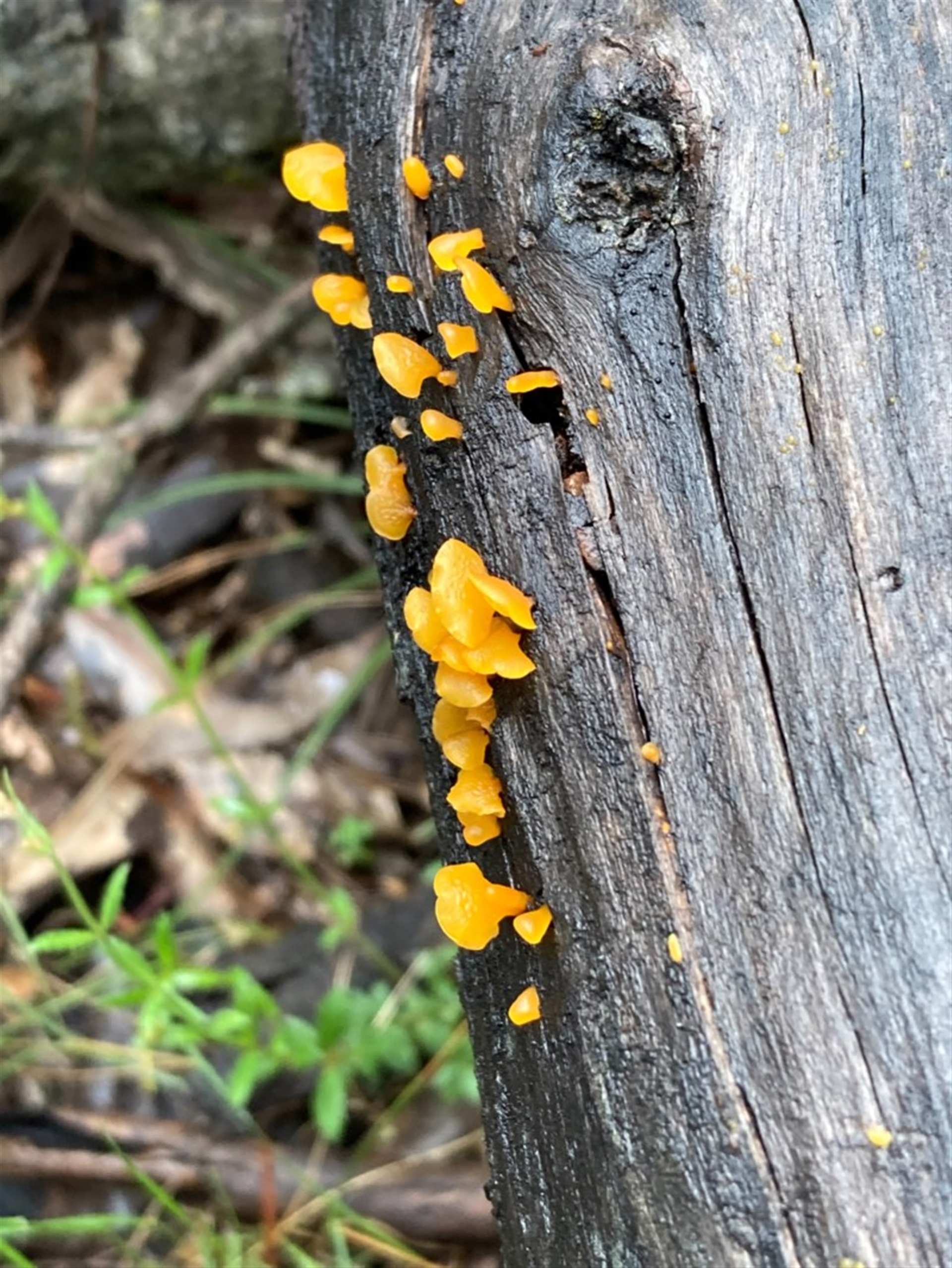 Safarigirl Canberra & Southern Tablelands NatureMapr Jelly-like; smooth, featureless surface Other fungi on wood Fungi Dacryopinax spathularia