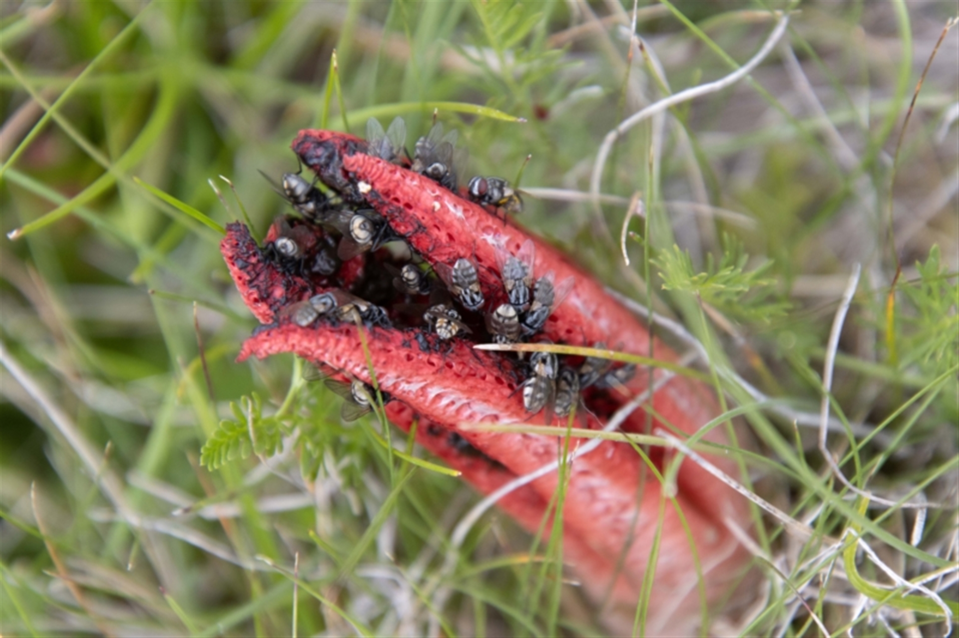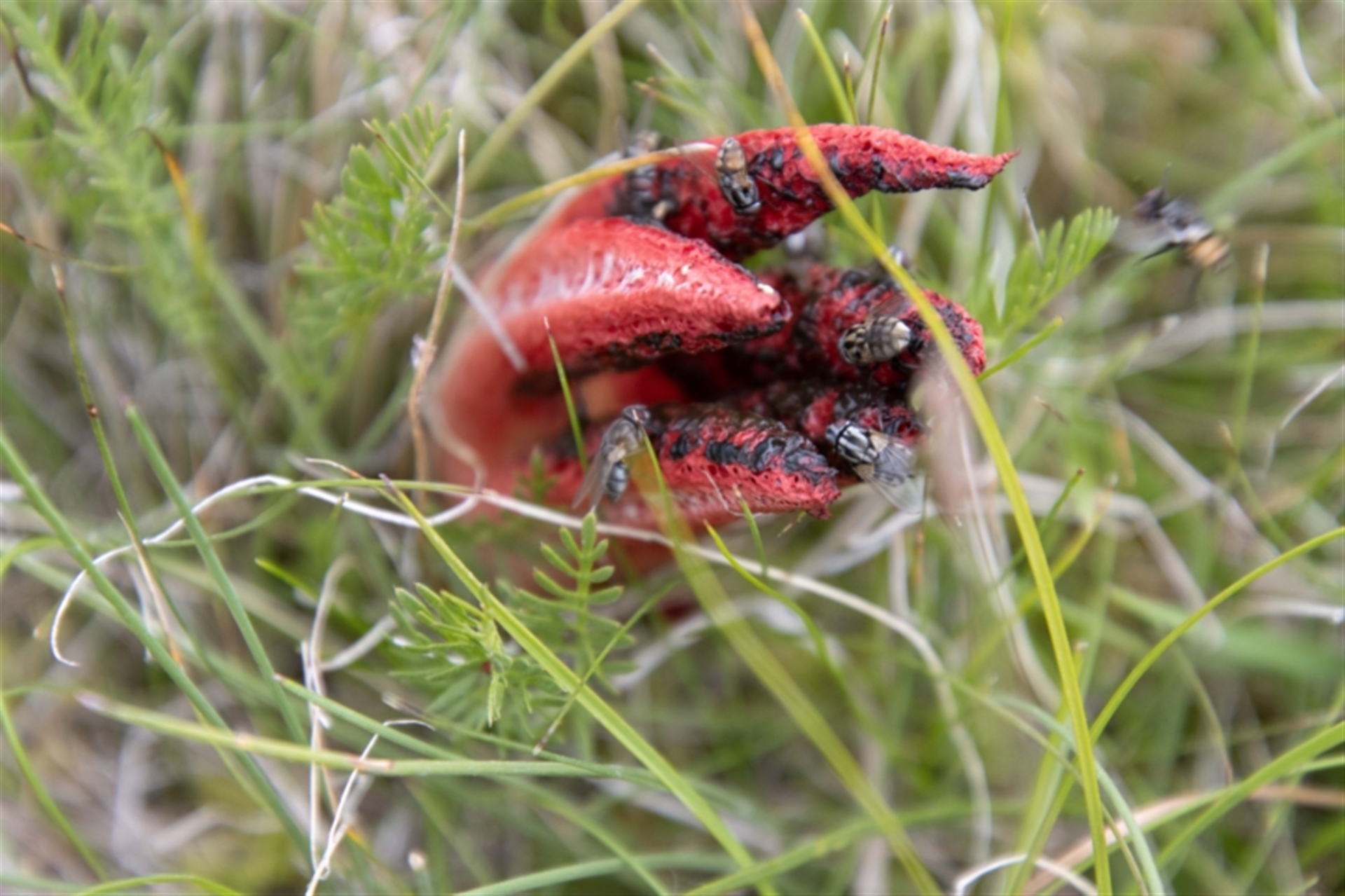 Fungi Stinkhorns, radiating arms atop a stem Stinkhorns: with a smelly, brownish spore slime SWishart Canberra & Southern Tablelands NatureMapr Clathrus archeriSynonyms