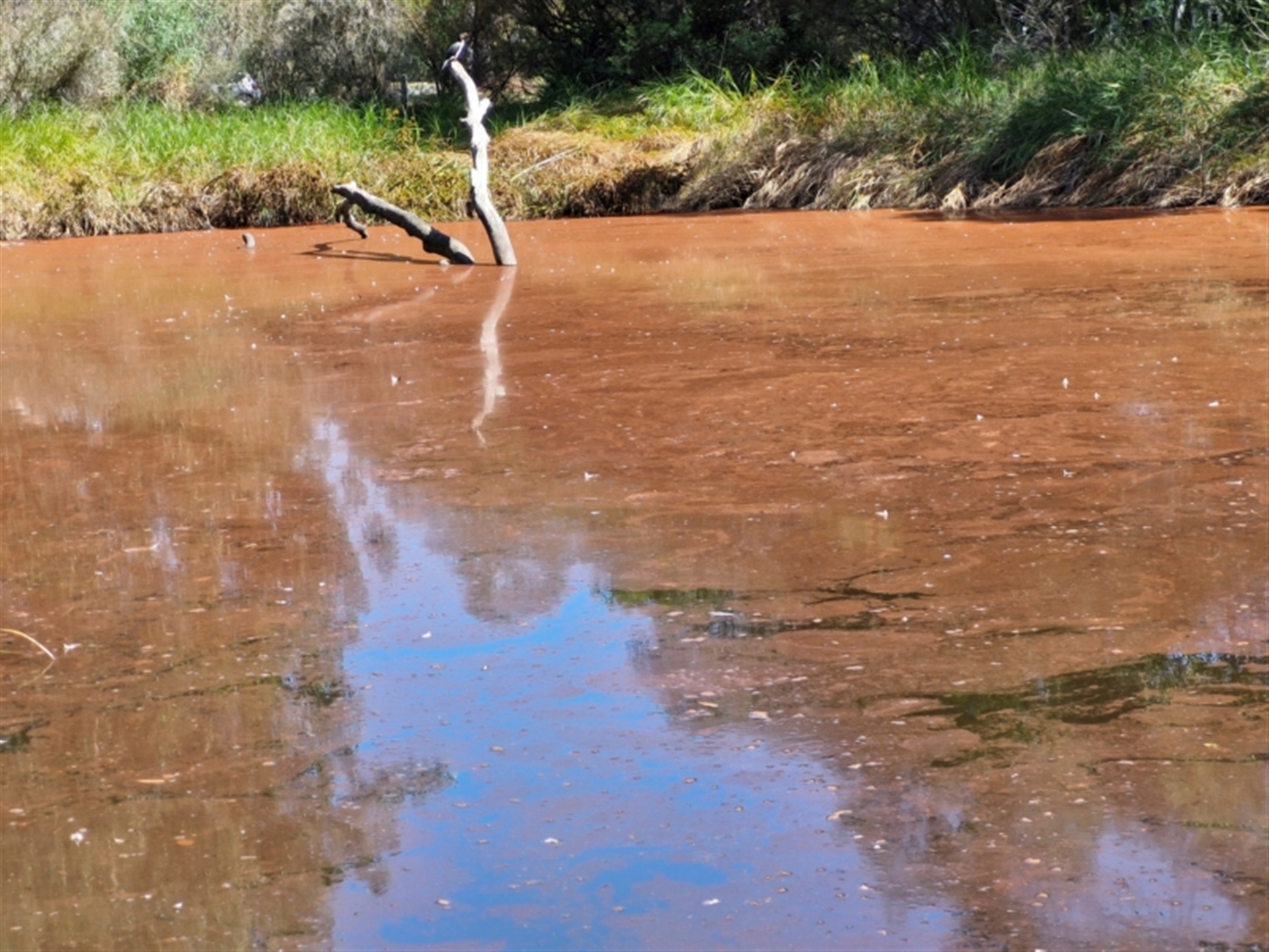 A red algae on top of pond.