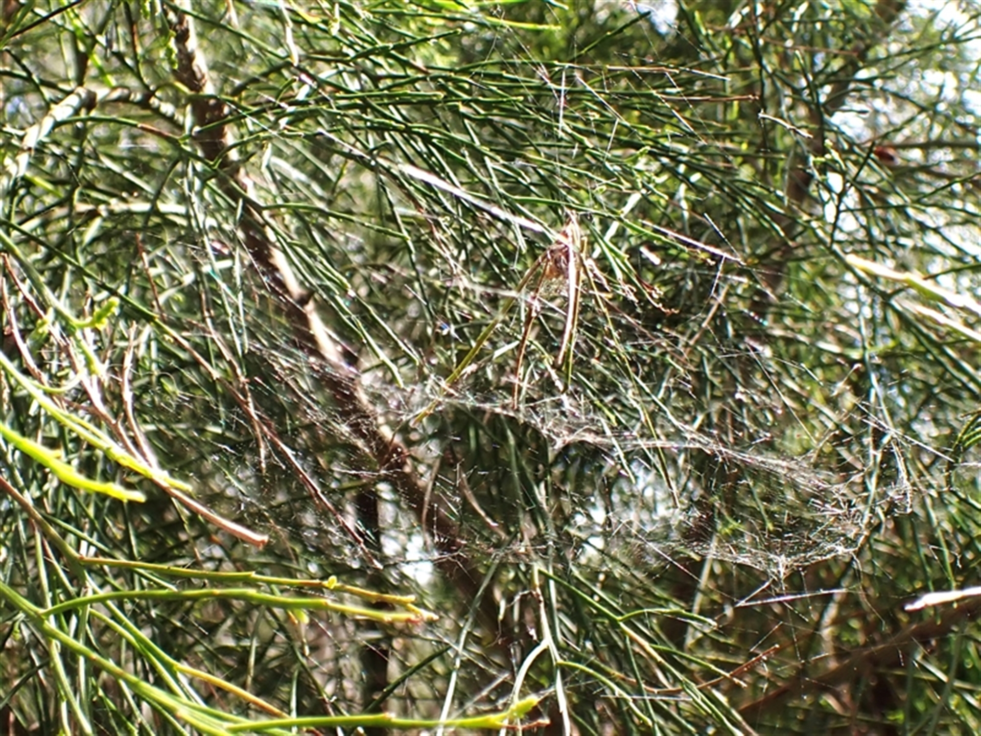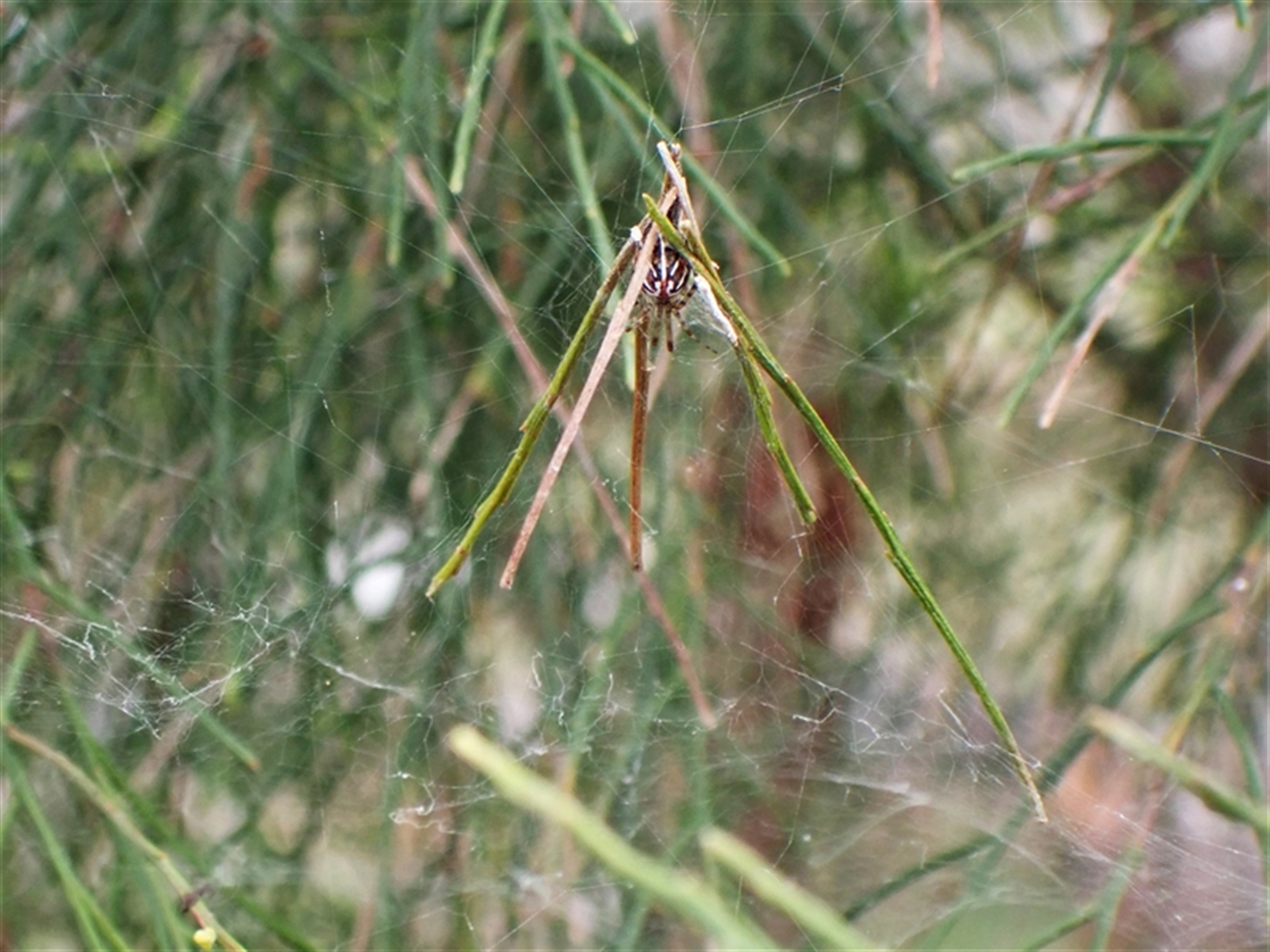 Spider in a shelter above a platform web in Exocarpos.